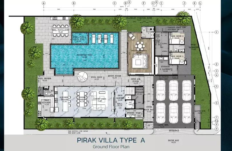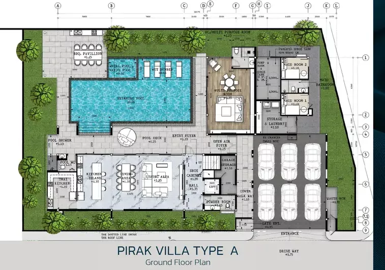 Pirak Villa effortlessly combines luxury and functionality. With amenities like an elevator and a spacious swimming pool with a wet bed, along with parking for three to six cars, it's where convenience meets comfort in perfect harmony. More Detail